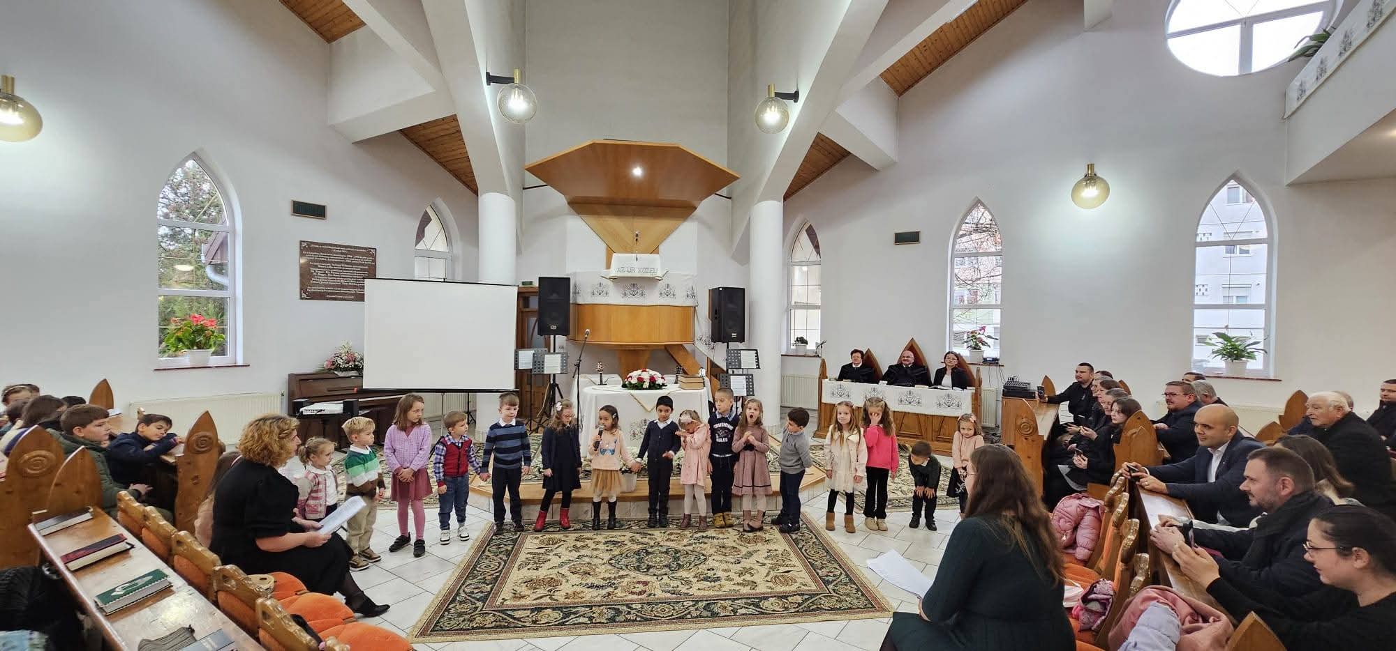 Az ünnepi istentiszletetet az óvoda nagycsoportos óvodásai indították, versekkel, énekszóval, Szilágyi Orsolya és Bajnai Melinda óvónők felkészítésével.