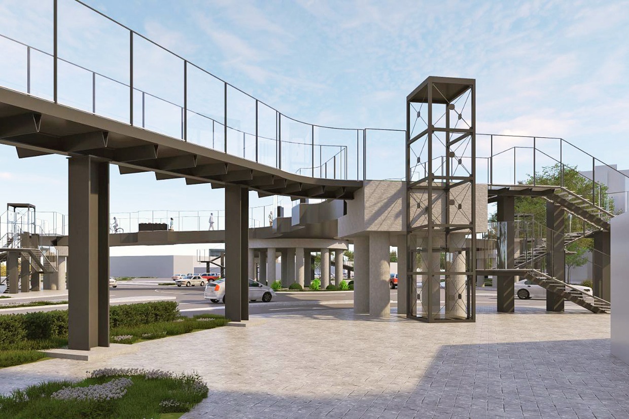 A látványtervek szerint a modern, acélszerkezetű felüljáró négy irányban ível majd át a forgalmas kereszteződés fölött. A gyalogosok és kerékpárosok számára kialakított sétányokat minden irányból lépcsők és liftek teszik megközelíthetővé, így a mozgáskorlátozottak számára is teljes körű hozzáférés biztosított. A felüljáró oldalait átlátszó védőfalak határolják, amelyek fokozzák a biztonságot és vizuálisan is könnyeddé teszik a szerkezetet. A szerkezet alatt tágas, az autósok számára a jelenleginél jóval kedvezőbb közlekedési tér jön létre, a körforgalom zöldfelületei pedig megmaradnak.