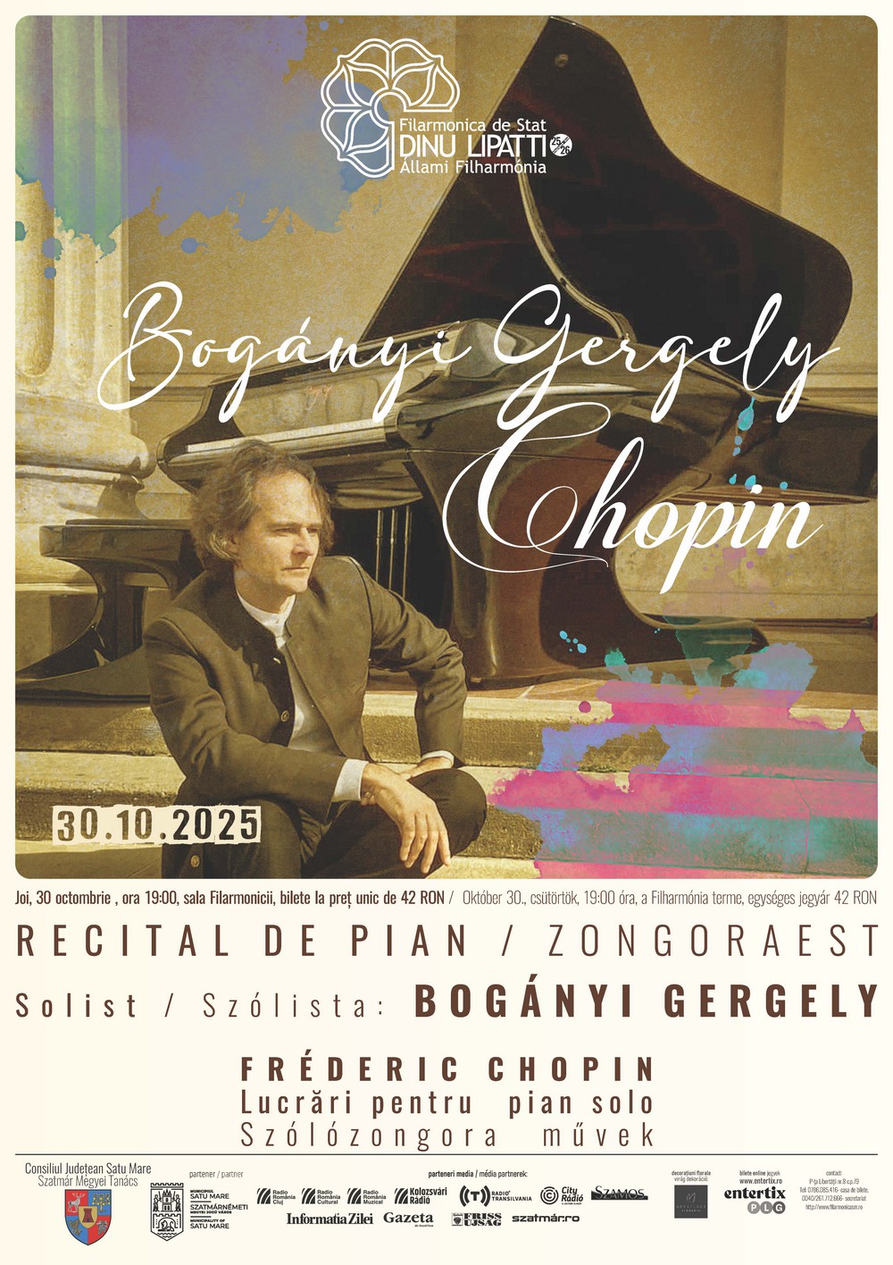 Egy zongora, hatvan Chopin-darab és egy est, amely minden alkalommal másként szólal meg: iktóber 30-án, csütörtök este 19 órától a Dinu Lipatti Filharmónia termében Bogányi Gergely zongoraművész különleges koncerttel várja a közönséget.