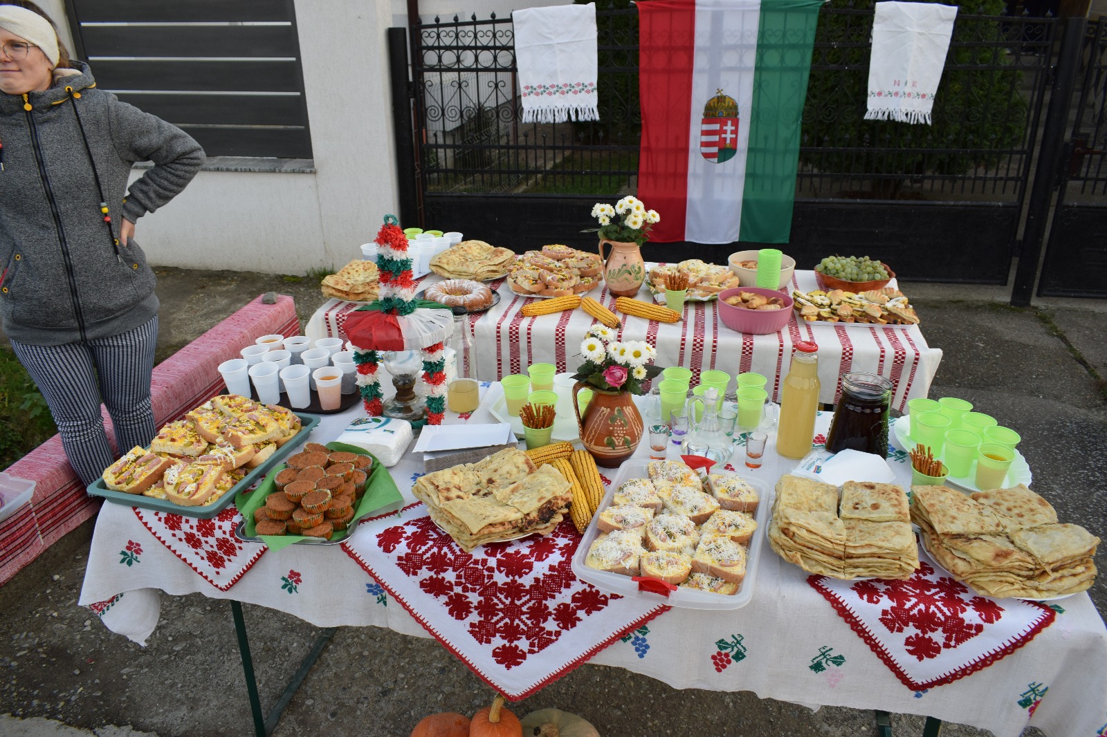 A vidám menet amerre járt, mindenütt hálás közönség és összesen tizenegy, ünnepi díszbe öltöztetett, gazdagon megrakott asztal várta a táncosokat. Az asztalokat a kapuk előtt állították fel, és nemcsak a házigazdák, hanem a szomszédok is hozzátették a maguk finomságait. Ahol megállt a menet, ott a táncosok körbe perdültek, a házigazdák pedig nagy örömmel kínálták őket a nagy gonddal készített finomságokból. Az egyik asztal különösen nagy sikert aratott: a megyében is jól ismert bogdándi béles gőzölgött rajta.