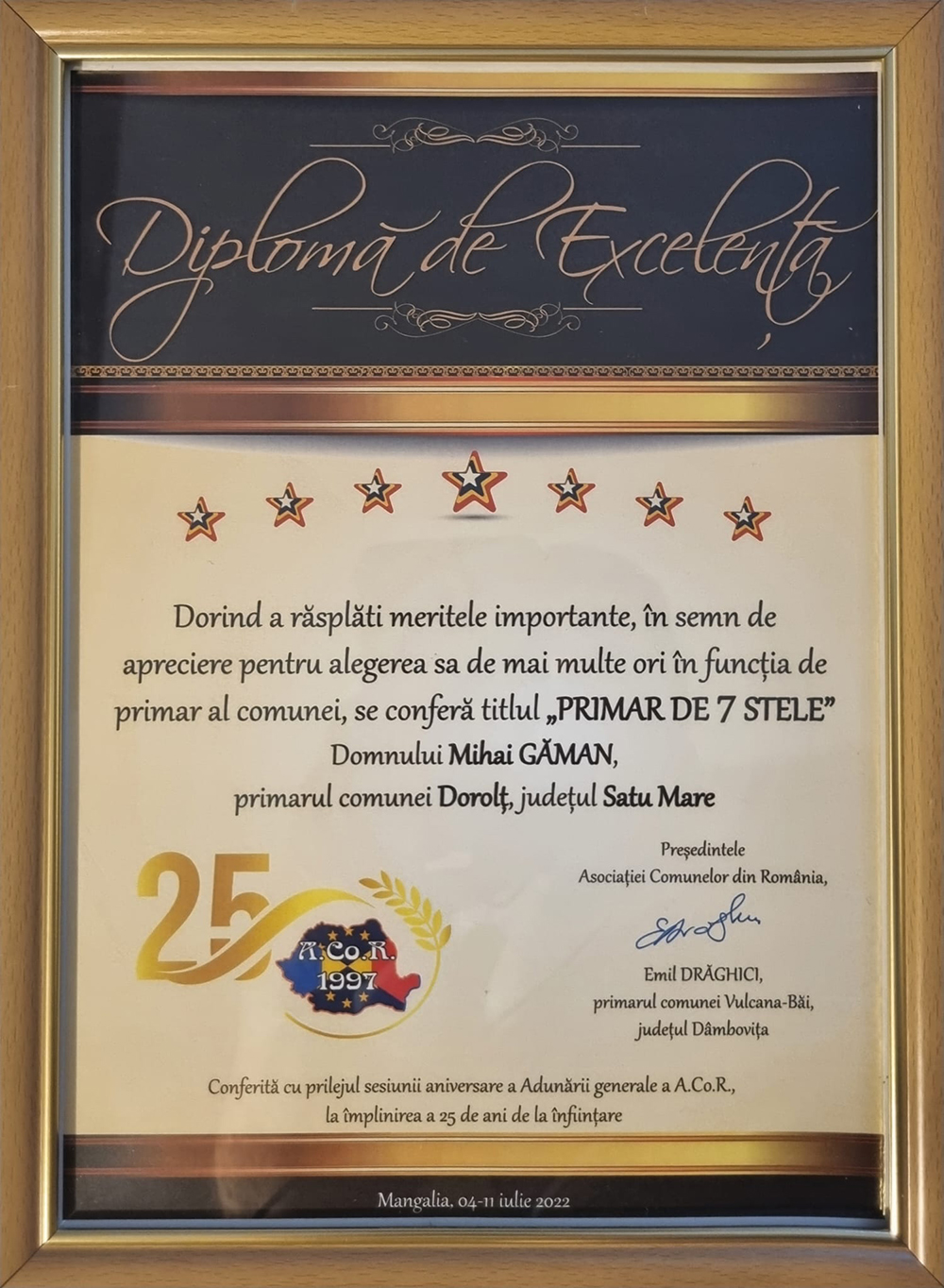 Itt adták át csütörtökön az idei elismeréseket, Szatmár megyéből pedig két polgármester volt jelent: Găman Mihály, Pusztadaróci polgármestere, aki hét csillagos-, míg Pop Dumitru, Szatmárudvari polgármestere 6 csillagos elismerést kapott.