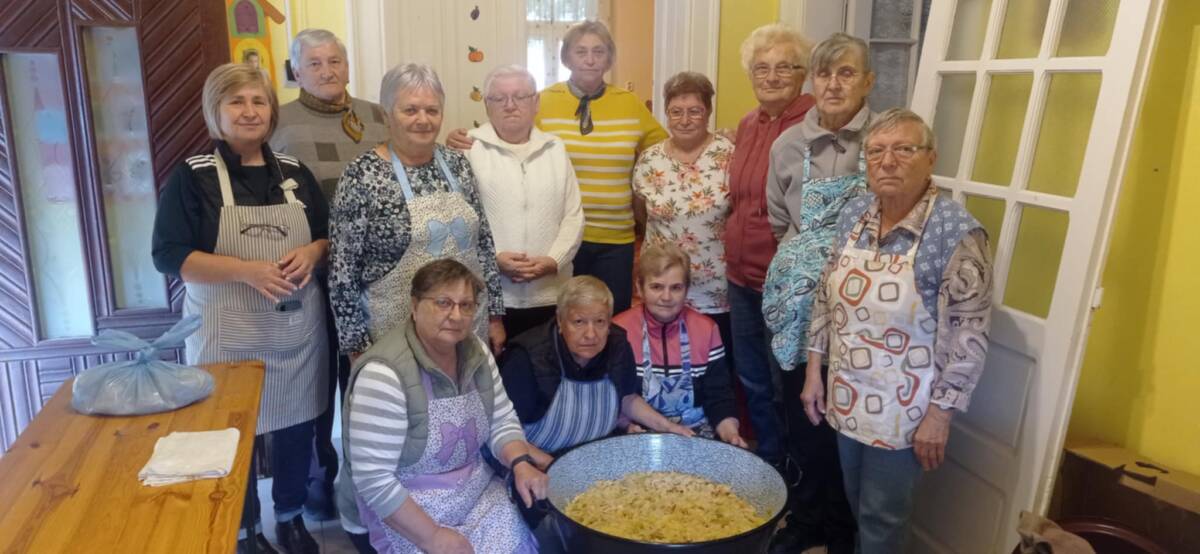 A zöldség- és gyümölcs összeszedés sem maradhatott el. Nagy zsivaj közepette teltek meg a kosarak répával, petrezselyemmel, hagymával, zellerrel, csípőspaprikával -amit később felfűztek- tökkel, burgonyával, dióval, babbal, káposztával, karfiollal, almával és körtével. A káposzta savanyítása sem maradhatott el, zengett a “döng-döng” jelszó a kicsinyek ajkáról, akik körbeállták a hatalmas káposztáshordót, egymás kezébe adva a hatalmas és nehéz döngölőt. Közben a szülőknek és az ifjaknak szánt feladat elvégzése is beindult. A nőszövetség és presbitérium 1050 megtöltött káposzta főzésére szánta el magát, a bográcsételek versenyébe beszállt öt családokból álló csapat.
