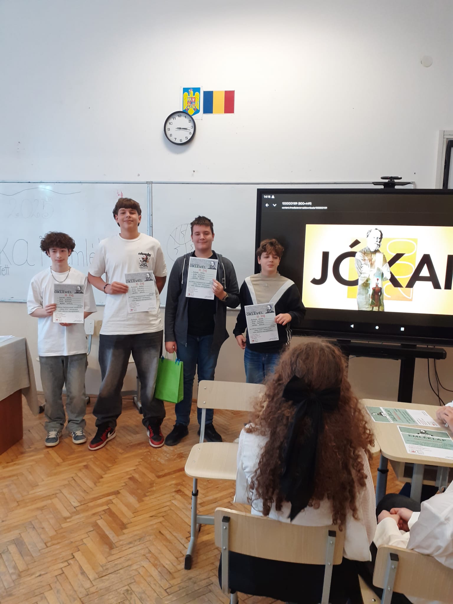 A szatmári Kölcsey Ferenc Főgimnáziumban szerdán a Jókai Mór születésének 200. évfordulójához kapcsolódó emlékév alkalmából vetélkedőt rendeztek az iskola nyolcadikosai számára.