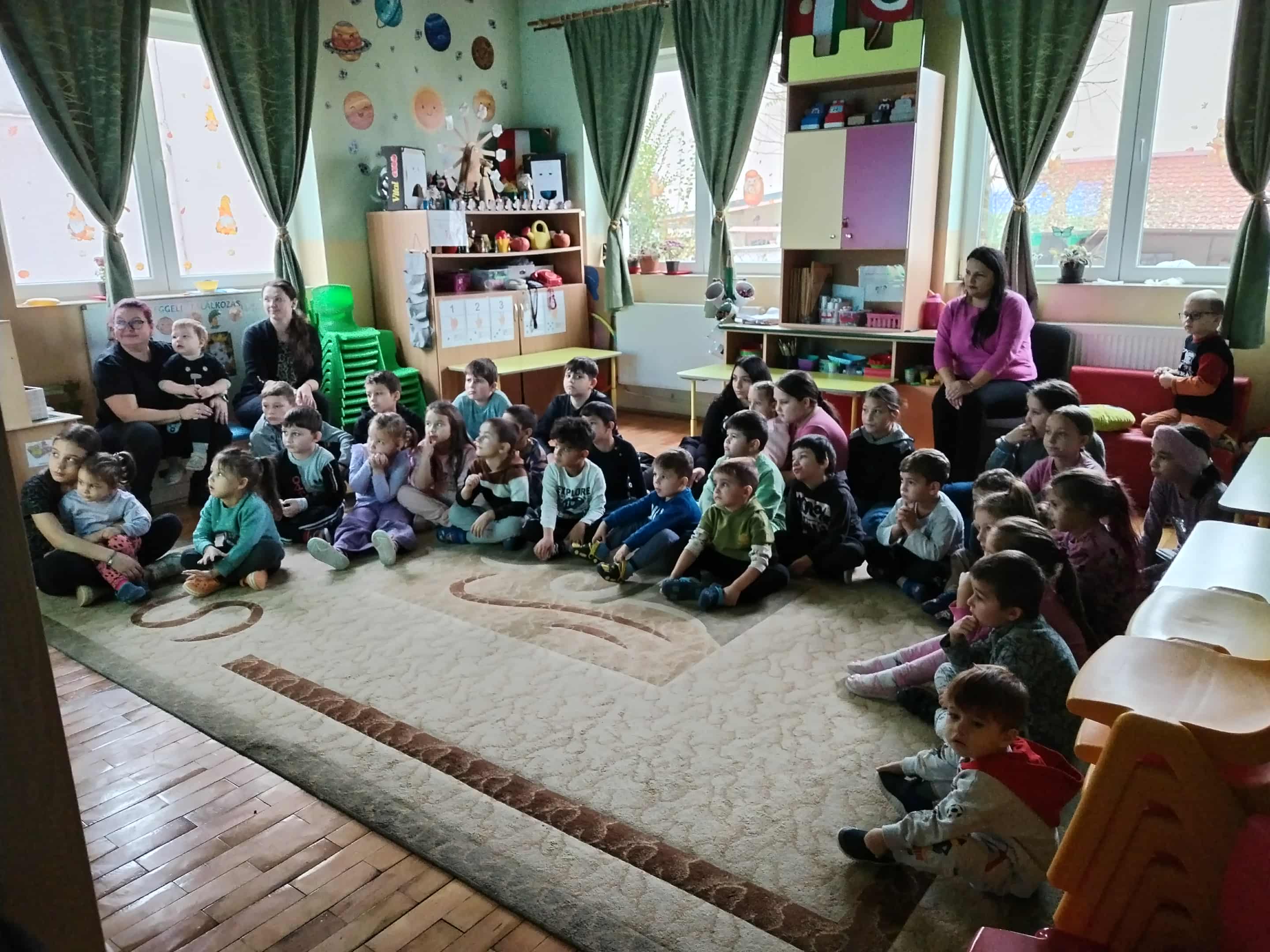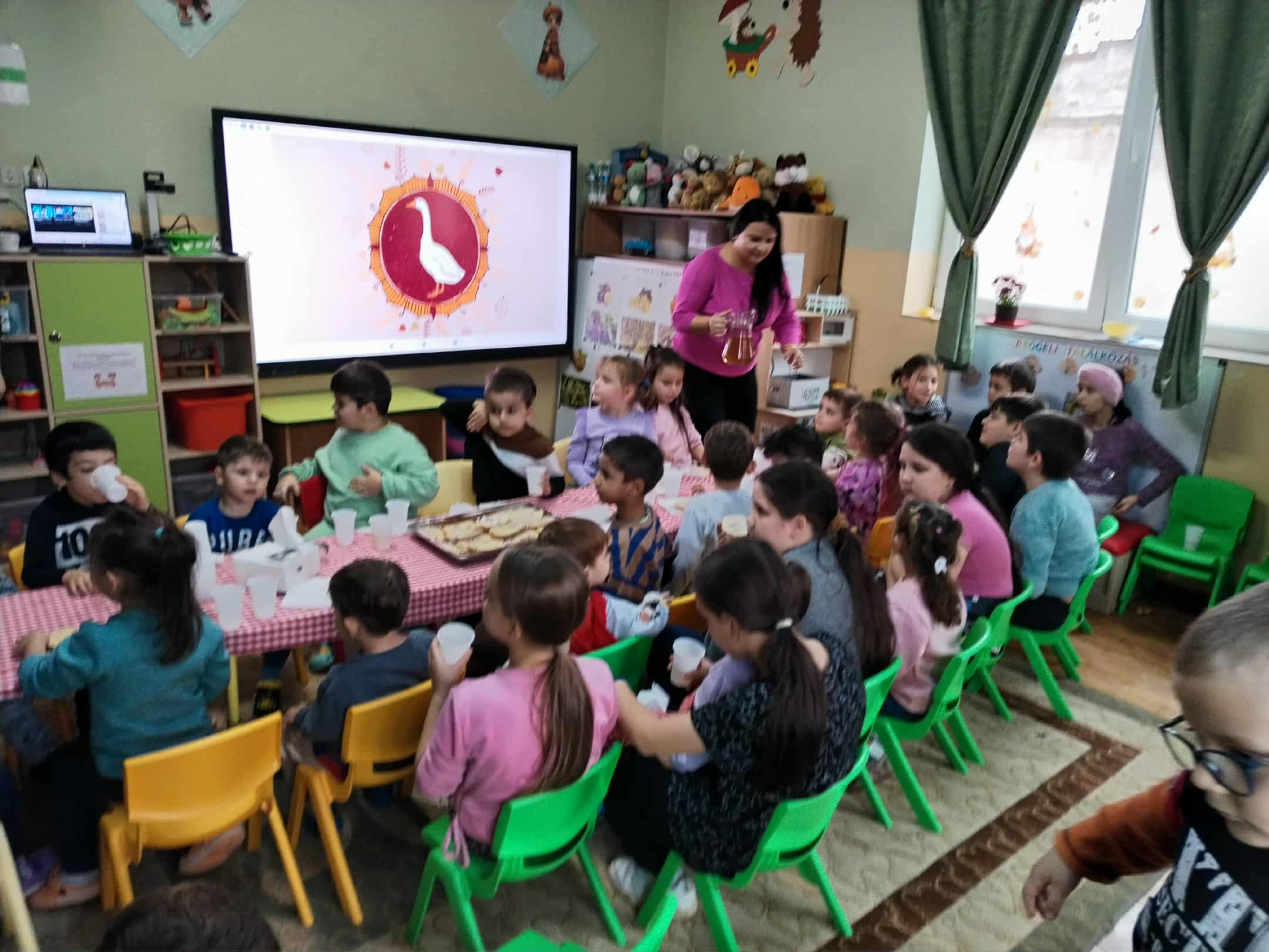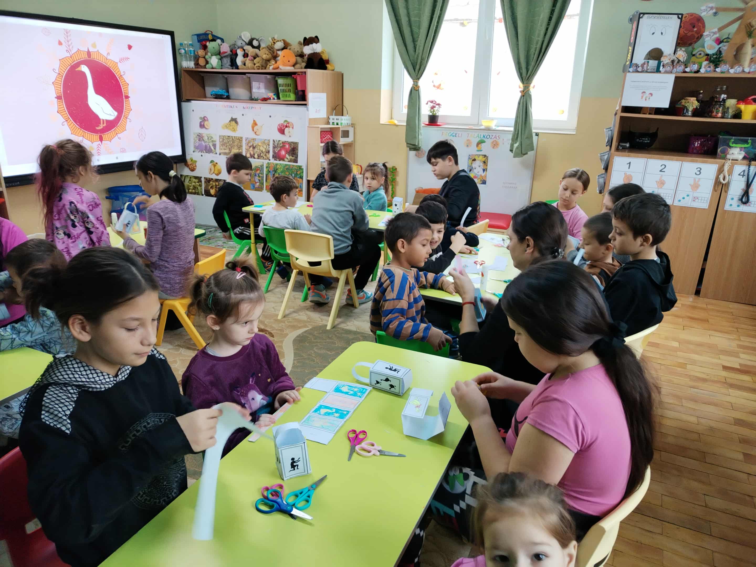 A programhoz később a kiscsoportosok is csatlakoztak, így igazi közösségi hangulatban telt a délelőtt, majd az elkészült lámpasokkal körbe álltak és el énekelték a "Száz liba egy sorban" című gyermekdalt.