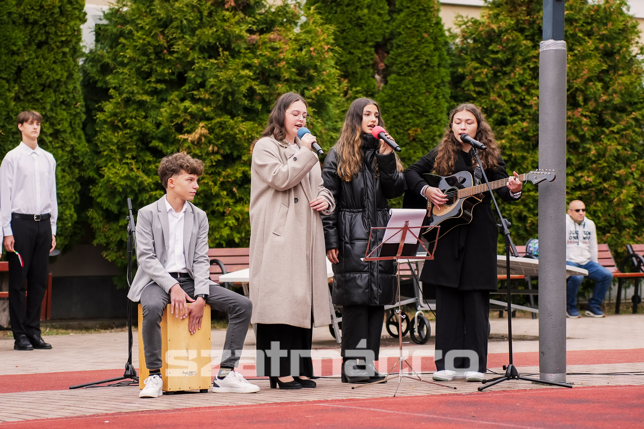 A műsor zenei részét Lakatos Máté, Füzi Gréta, Szabó Réka és Krakocky-Heidenhoffer Johanna előadása tette teljessé, akik közösen énekelték el Demjén Ferenc Szabadság vándorai című dalát. A megemlékezés végén a résztvevők együtt szólaltatták meg a nemzeti imánkat, a Himnuszt.