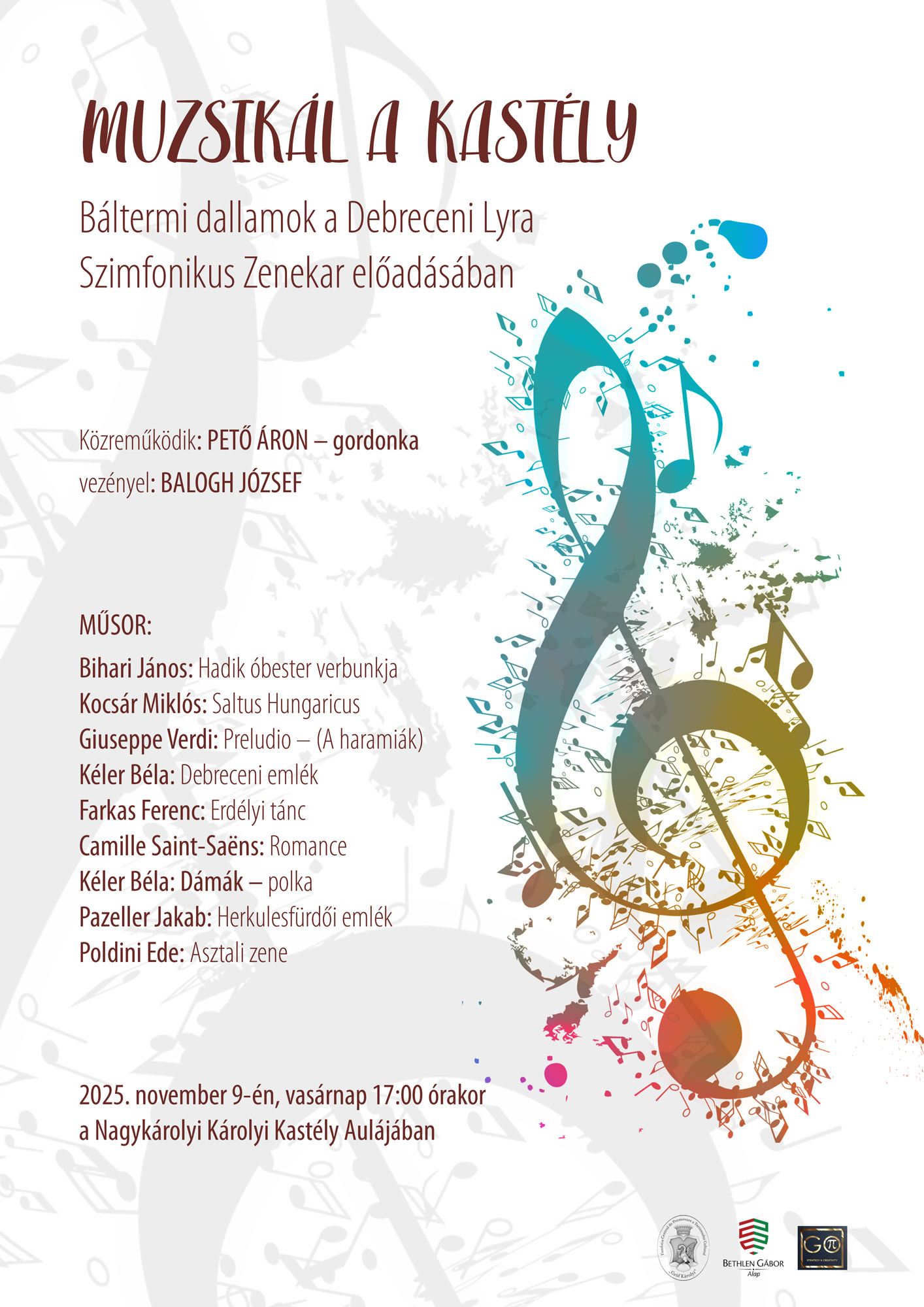 A Nagykárolyi Károlyi-kastély patinás falai ismét megtelnek zenével és eleganciával: 2025. november 9-én, vasárnap 17:00 órakor kerül sor a „Muzsikál a kastély” című koncertre, melyen a Debreceni Lyra Szimfonikus Zenekar báltermi dallamokkal varázsolja el a közönséget.