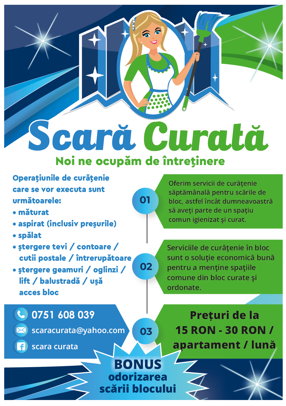 A Scară Curată, azaz a Tiszta Lépcsőház csapata pontosan ebben segít: heti takarítási szolgáltatást kínálnak társasházak és tömbházak közös tereibe, hogy Ön minden nap higiénikus, rendezett környezetben léphessen ki otthonából.