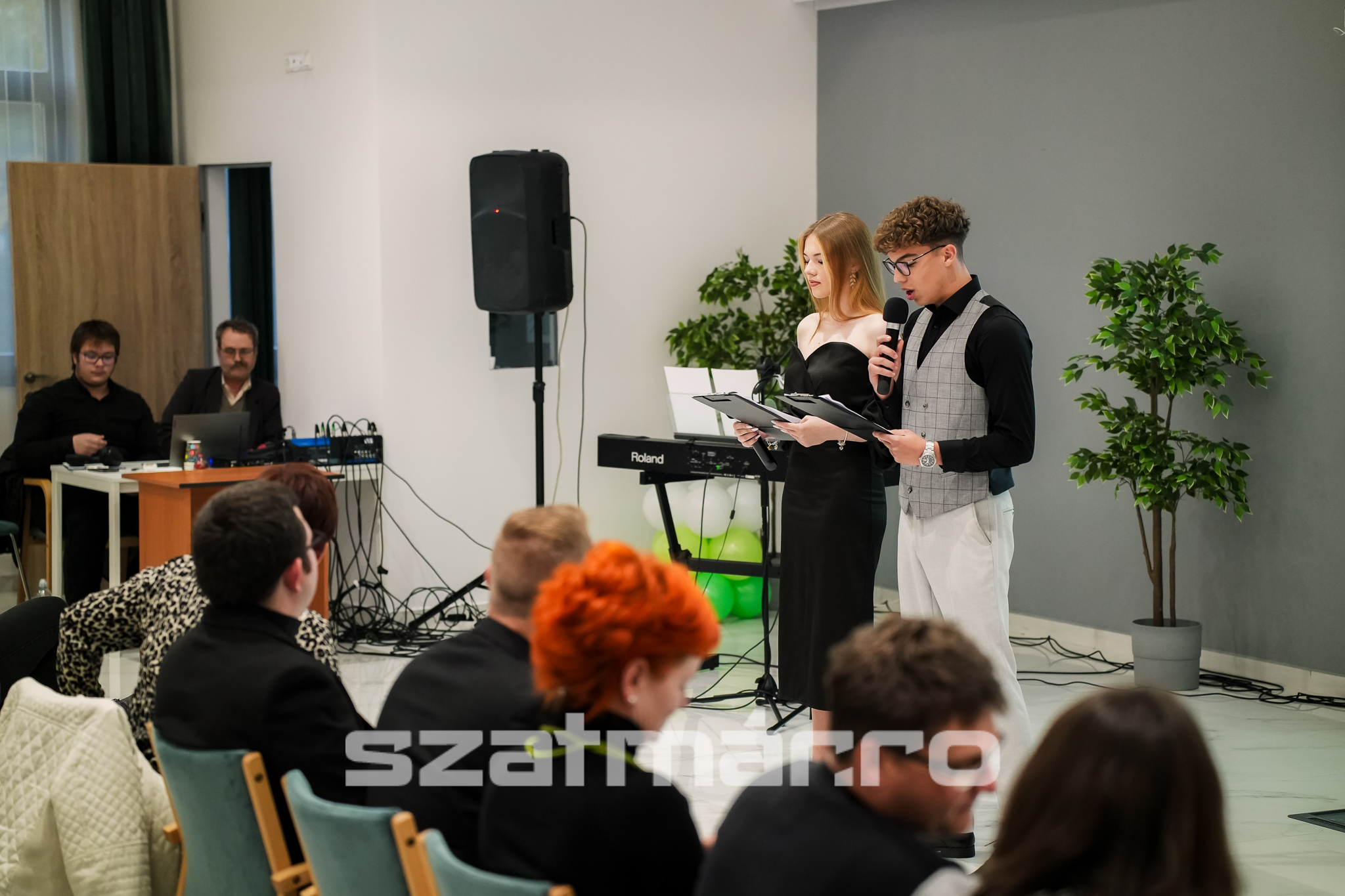 A műsorvezetők, Sályi Roland és Szemák Viola-Tamara, profin, ugyanakkor felszabadultan vezették az estét – és mindig sikerült mosolyt csalniuk a közönség arcára.