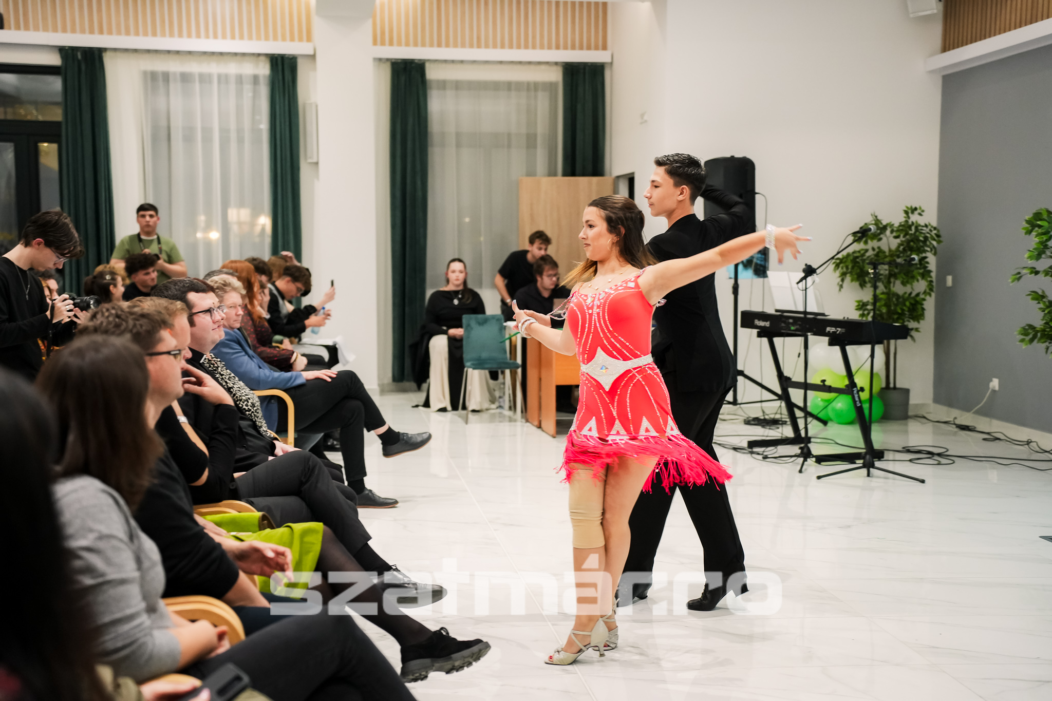 A profik sem maradtak el: előbb a Röpike néptáncosai, majd a Loga Dance Tánciskola két fiatal tehetsége, Craciun Hanna és Bosnea Murgu András igazi táncos show-val varázsolták el a termet.