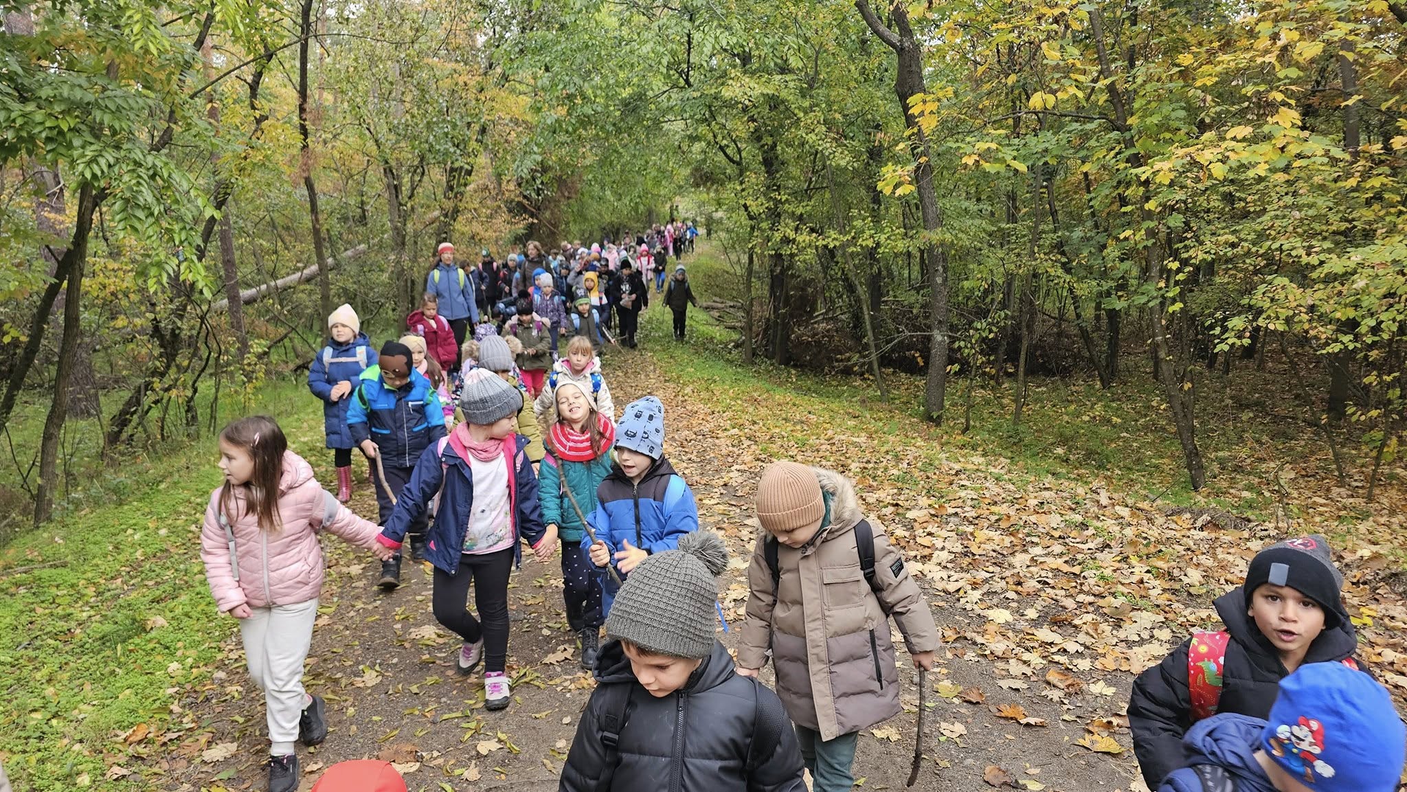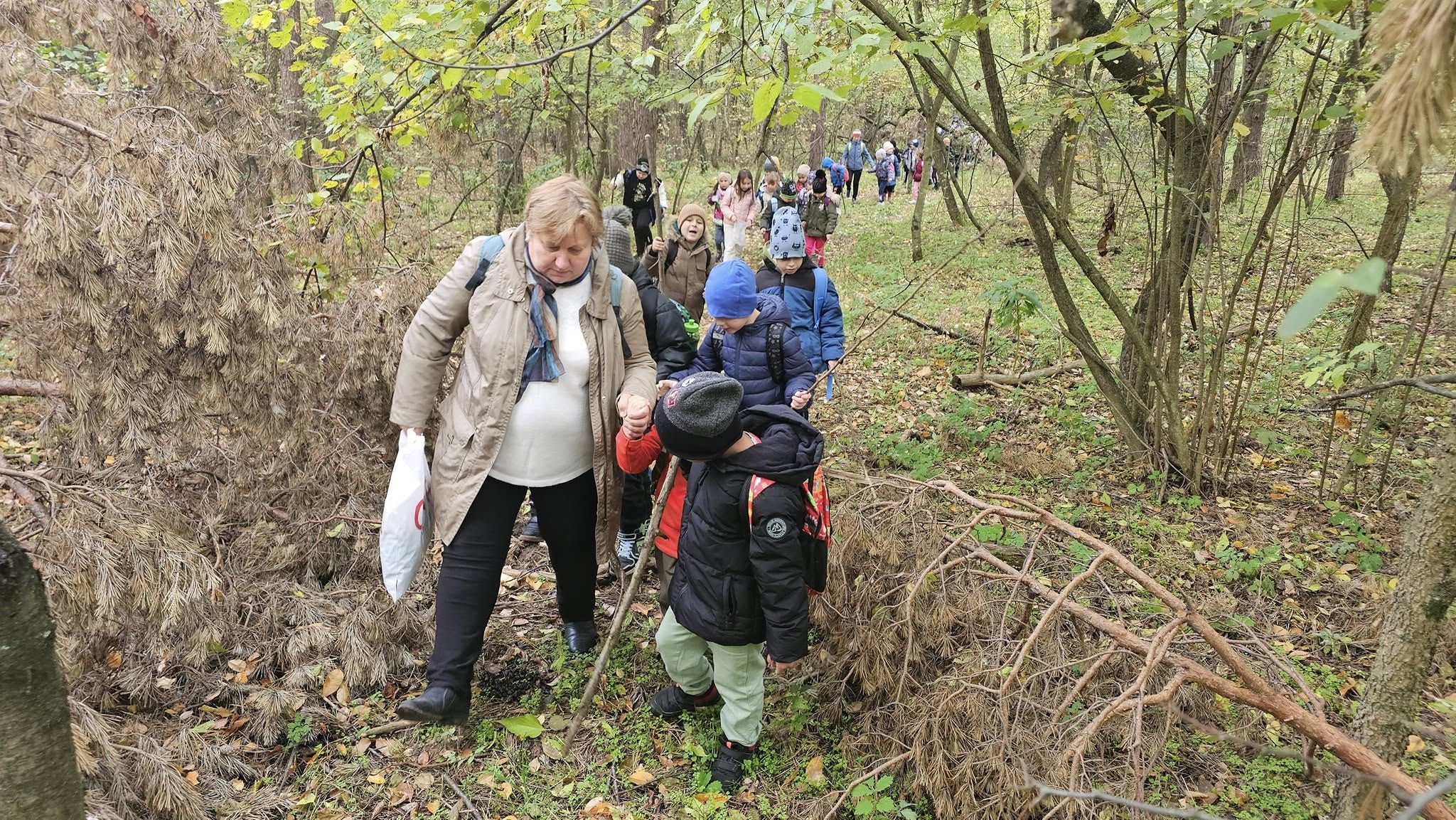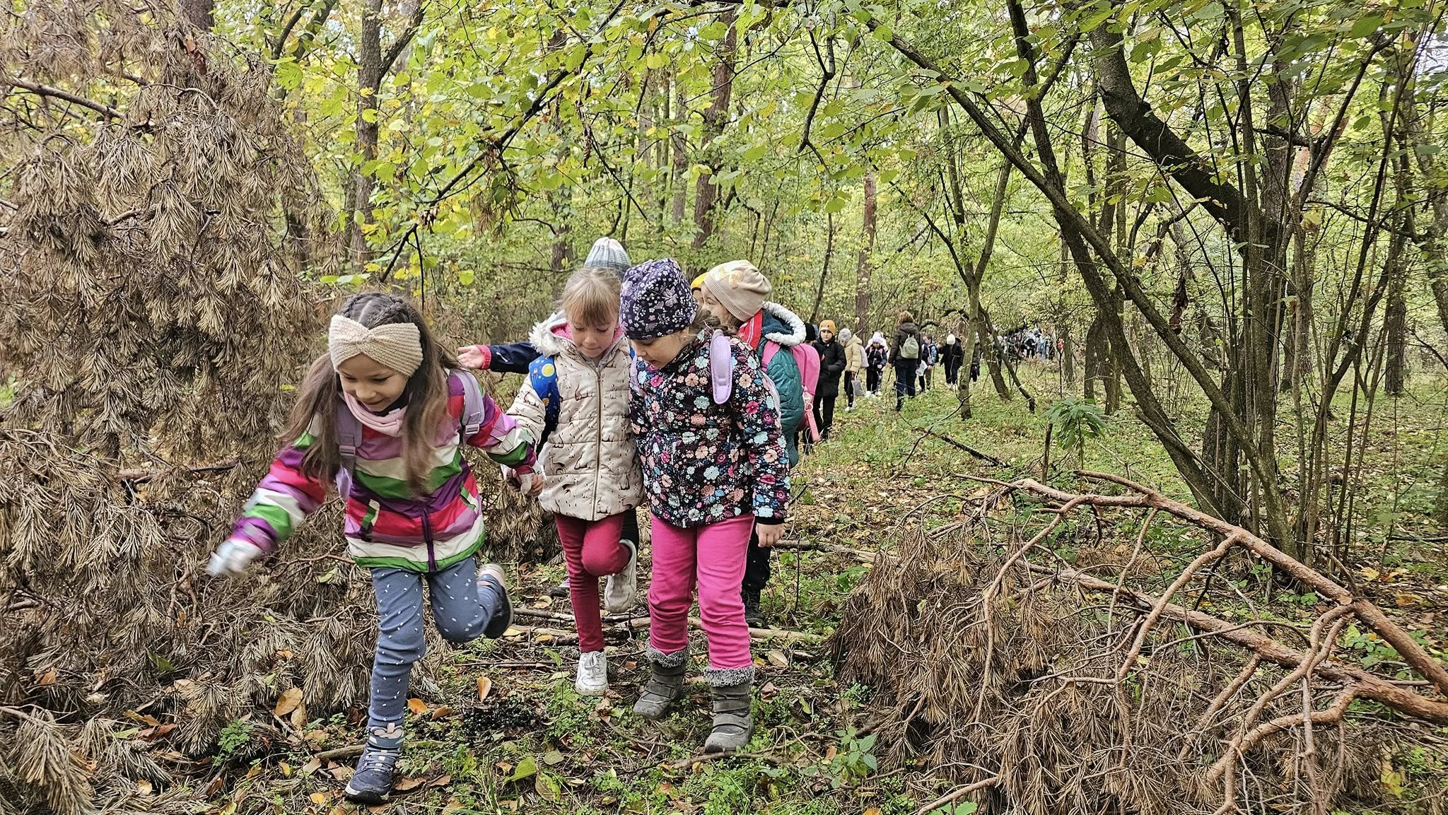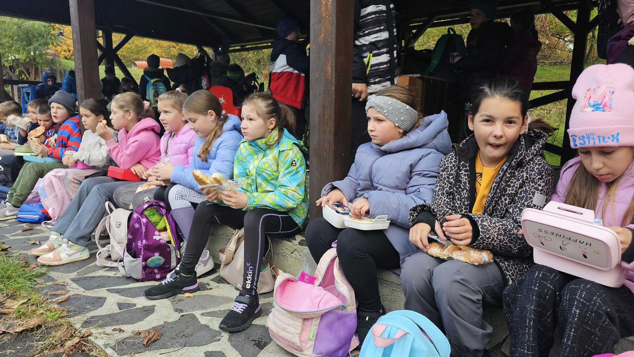 A tanítónőik vezetésével igen hosszú, több kilométeres sétát tettek az őszi színeibe öltözött rengetegben.
