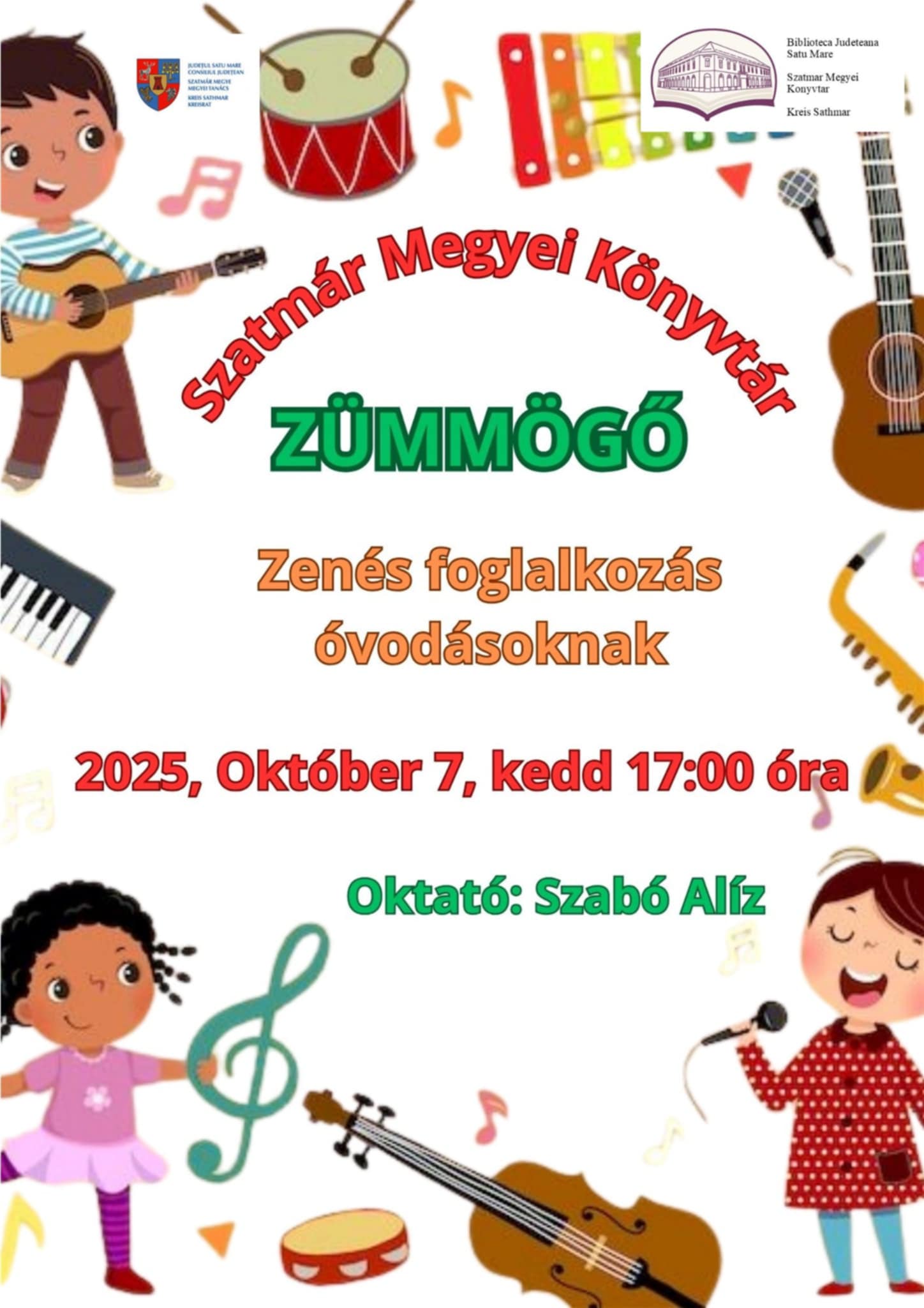 A Szatmár Megyei Könyvtár ismét különleges programmal várja a legkisebbeket: október 7-én, kedden 17 órától indul a Zümmögő elnevezésű zenés foglalkozás, amelyet kifejezetten óvodás korú gyermekeknek szerveznek.